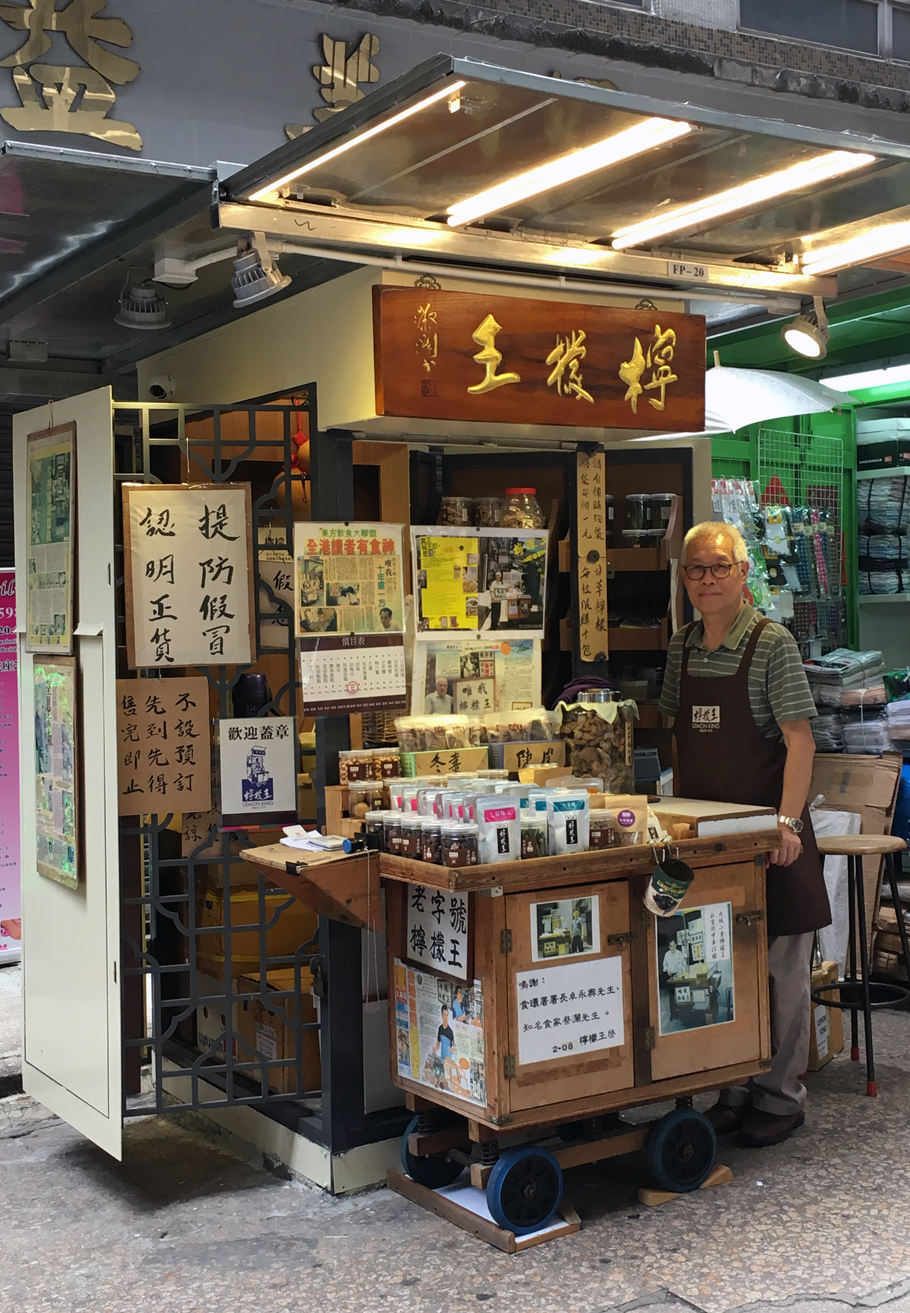 Founder, Mr TONG Kan Pui selling dried fruits in Wing Kut Street.